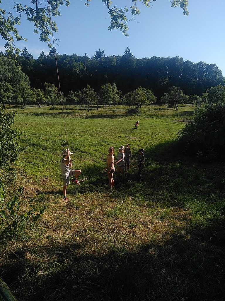 Der Traumgarten ist der Ort der Kinder. Mit einer Jurte, einer Feuerstelle, Garten, Bauwagen und Bienenhaus wird hier gegärtnert, gewerkelt, gefeuert, gekocht und gespielt.